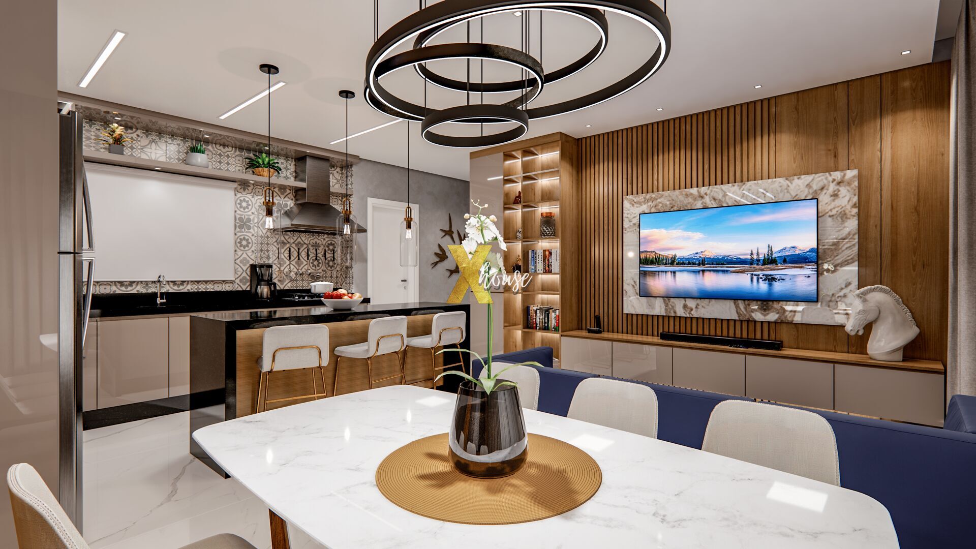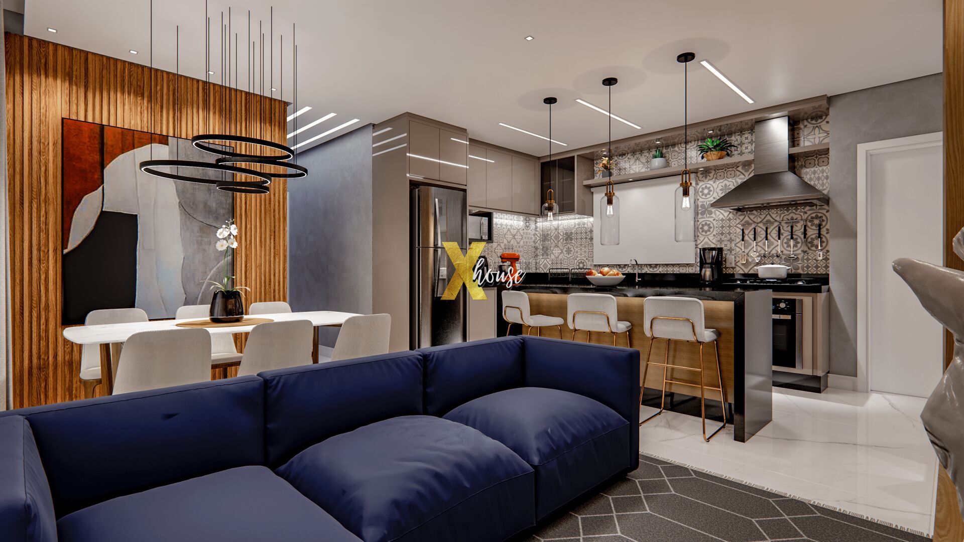 - Teto rebaixado em gesso em todos os ambientes, proporcionando um acabamento moderno e elegante;